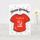 Personalized boy's 2nd birthday card with a red football/ soccer shirt design.