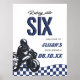Riding into six! Celebrate your sons 6th birthday with our blue, black and white speedster birthday welcome sign.