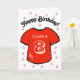 Personalized boy's 8th birthday card with a red football/ soccer shirt design.