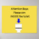 A funny poster for the bathroom asking the boys to aim inside the toilet