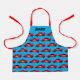 Boy's apron with blue and red small racecar design print. Personalised kitchen and cooking aprons for children. Auto sports template with bold typography lettering. Add your own name or funny quote. Create your own unique Birthday party gift for son, daughter, nephew, brother, sister, friend, cousin etc. Available in small and large sizes. Also great for BBQ, kid's dinner party, art & crafts projects, drawing, baking, painting and more. Blue or custom colour background. Red strap.