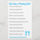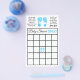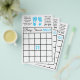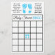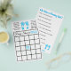 Blue baby footprints boy's baby shower Bingo card on one side and the other has, "Who Knows Mummy Best" Game.