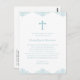 This blue and white boys baptism invitation postcard features a pastel blue cross and a decorative blue design at the top and bottom. The blue text can be changed to suit a First Communion or a confirmation. Add your return address to the back, and any additional text if desired.