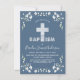 This boy's baptism or christening invitation features flowers and a watercolor style cross with watercolor style "baptism" text. This pretty and modern invite can easily be customised for your child's special religious occasion.