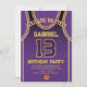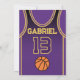 Celebrate your special day with this Basketball Jersey Birthday Invitation, designed for true basketball fans! Featuring a bold jersey design inspired by the iconic purple and gold colours, this invite is perfect for kids, teens, and adults who love the game. Personalise it easily with your name, age, party details, and even team number in just a few clicks. Available in multiple sizes, printed on premium quality paper with a wide range of finishes to match your style. Choose from different paper types, fast printing, and quick shipping so your invitations arrive on time. Whether it’s for a sports-themed party or a Lakers fan celebration, this invite is the perfect way to get your guests excited.