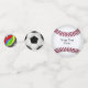 Fun personalised confetti for birthdays and sports events with graphics of soccer balls, baseballs and marbles. Personalise the black text for your event.