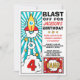 Have a birthday party blast with this fun comic strip inspired birthday party invitation featuring a rocket ship blasting off into space. Add your child's name, birthday year and all the party details. Perfect for all ages and someone who loves space, comic strips, rockets and wants to have a blast of a birthday party.