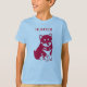 The t-shirt feels and looks great quality, a good thick cotton. It will be a little big for my son, but that means he will be able to wear it and not out grow it too soon. The print was as described on the order when personalised. True size, shape and colour T-shirt- thanks.