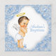 Boy's angel baptism and christening invitation with adorable angel baby boy on a beautiful baby blue swirl background. This adorable baby blue and white angel baptism invitation is easily customised for your event by simply adding your details in the font and wording of your choice. You can also change the background colour. This is a printed design with no real diamonds, glitter, etc.