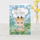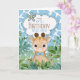 Boy's Blue Jungle Giraffe Theme 5th Birthday Card