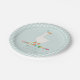 This cute boys 1st birthday paper plate design features one silly goose with a blue party hat, with matching blue gingham, and can be personalised with your child’s name in cute and colourful typography. The perfect farm design for your little one's first birthday!