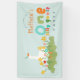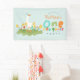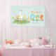 This cute and fun kids 1st birthday welcome banner design features one silly goose with a party hat in a field of flowers, and can be personalised with your boys name in cute and colourful typography. The perfect blue farm decor for your little one's first birthday!