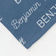 Cute, custom (personalised) blanket with a blue background and white repeating names in modern, trendy fonts! Edit the name, colours and background colour easily.