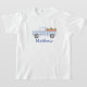 Features an adorable blue plaid pick up truck filled with orange gingham pumpkins. Customise with your child's name. Works best on white or vivid printing.