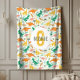 This cute and modern monogrammed boy blanket features a playful, full-coverage jungle dinosaur pattern with a T-Rex, Stegosaurus, and lush Jurassic plants in rich, earthy tones. Designed with space for your child’s name and initial, it’s the perfect personalised gift for baby showers, birthdays, nurseries, or any little dino fan. Soft, stylish, and totally roarsome!