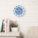Boys Blue Watercolor Dinosaur and Name Kids Large Clock