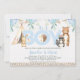 Boy's woodland animals baby shower invitation featuring four cute animals, a rabbit, racoon, porcupine and bear in a boho style. I have added the word BOY to the design and a blue floral and feather arrangement at the top of the design . The background is a scanned watercolor paper image. I wanted to create some new woodland animals baby shower invitations for the store because it's a popular theme. This boy's boho woodland baby shower invitation is ready to be personalised.