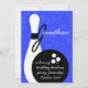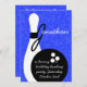 Dark blue watercolor background with a bowling pin and a big black ball is all you need to invite all your friends for a game. The text written on the bowling ball is nice and on the back of the all blue background, the white text stands out perfectly. All text on the invite can be customised.