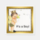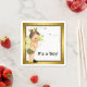 Bumble bee baby shower napkins with cute dark hair brunette baby boy wearing an adorable bumble bee outfit on a black and gold background with buzzing bees. You can add the text of your choice to personalise this cute bee baby shower napkin.