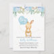 Looking for a sweet floral watercolor bunny baby shower invitation for a baby boy? This design features a bunny and watercolor balloon and a blue watercolor floral arrangement at the top . The background is white with a faux gold grunge texture on the sides of the invitation. This boy's bunny baby shower invitation is ready to be personalised. Similar design is also available for a girl at the store.