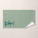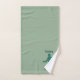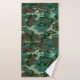 Boy's bath towel set done in a camouflage theme of Kelly green, forest green, brown and light green. The hand towel is done in a light green with graphics of a green toy solider and custom dark green text. Personalise this popular kid's towel set, to read what you want.