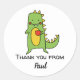 Say “RAWR-some thanks!” with this adorable cartoon dinosaur thank-you sticker — perfect for boys’ birthday party favors, thank-you cards, or envelope seals.
