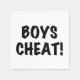 Humour text sayings T-shirts, mugs, cards, stickers, buttons, magnets, key chains, notebooks, dry erase boards, bibs, kitchen towels, pillows, and more with black or white text that reads Boys Cheat! You can easily change the background colour to whatever colour you prefer!