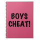 Humour text sayings T-shirts, mugs, cards, stickers, buttons, magnets, key chains, notebooks, dry erase boards, bibs, kitchen towels, pillows, and more with black or white text that reads Boys Cheat! You can easily change the background colour to whatever colour you prefer!
