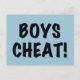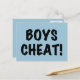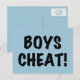 Humour text sayings T-shirts, mugs, cards, stickers, buttons, magnets, key chains, notebooks, dry erase boards, bibs, kitchen towels, pillows, and more with black or white text that reads Boys Cheat! You can easily change the background colour to whatever colour you prefer!