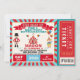 This circus themed ticket birthday invitation features a ring master and clown and is a fun and colorful way to invite guests to your little boy's circus themed birthday party. This invitation is suitable for various ages.