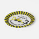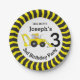 Bold construction building themed birthday personalised disposable paper plates. Digger and chevron design. Personalise with your own birthday boys name and age. Currently reads Dig in it's Joseph's 3rd Birthday Party. Ideal for kids construction birthday party's to encourage the children to eat. Original art and design by Sarah Trett.
