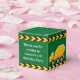 Cool custom construction excavator birthday party favour boxes in green for a child who loves yellow construction vehicles. Fun vehicle favours for a little boy who loves cars and trucks. Customise with your kid's name between the black and yellow caution tape.