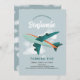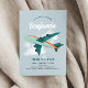 This cool and modern boys travel birthday invitation design features an aeroplane illustration, with a blue sky and clouds, and can be personalised with all the information you need for your child’s birthday party. The perfect whimsical blue aeroplane-themed invitations for a 5th birthday, but customisable for any age.