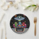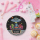 This Out of This World birthday paper plate features cute aliens celebrating in a colorful retro space diner with neon stars, planets, a UFO, and a classic checkerboard floor. Personalize with your child’s name and age for a fun space themed kids birthday party. Perfect for a 6th, 7th, 8th or 9th birthday, alien party, outer space birthday, or retro galaxy celebration for boys or girls.