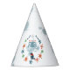 This cool and modern sports-themed kids birthday party hat design features a blue paintball design. The hat can be personalised with your boys name and age. The perfect paintball-themed addition to your child's birthday party!