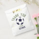 This cute and modern sports-themed kids birthday thank you favor bag design features a soccer ball and stars design with green and navy blue lettering. The bags can be personalized with your boy's name. The perfect sporty addition to your kids birthday party!