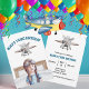 Boys Cute Aeroplane Travel Kids Birthday Watercolo Invitation