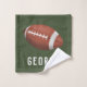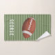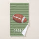 This cute and modern kids bath towel set features an American football cartoon pattern, with green stripes. The towel set can be personalised with your boys name and monogram. Perfect for any sports lover, great for toddlers and older children!
