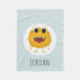 This cute and modern blue custom kids fleece blanket design features a yellow monster alien design. There is also space for you to add your boy's name in a simple and minimalist font. The perfect trendy monster-themed gift for any magical creature enthusiast!