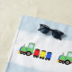 This cute towel design features a hand drawn colourful train on pastel blue stripes, and can be personalised with your boy's name. The perfect modern gift for any toddler, child or train lover!