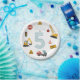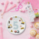 This cute and modern construction birthday paper plate features a blue building design with a digger, concrete truck, and road signs. Personalise with your child’s name, age, and party details — the perfect addition to any boys’ construction-themed birthday celebration.