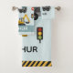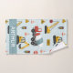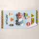 This cute and modern blue custom kids towel set design features construction illustrations and a pattern, with diggers, concrete mixer, traffic lights, road signs and cranes. There is also space for you to add your boys name in a beautiful font. The perfect transport themed gift for any builder to be!