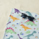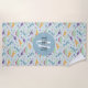This cute kids beach towel features a dinosaur cartoon pattern, with a t-rex, stegosaurus, rainbows and jurassic jungle plants, and can be personalised with your boys name and monogram. The perfect blue dinosaur themed gift for any beach lover!