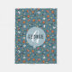 This cute blue kids fleece blanket features a sports pattern, with a football, soccer ball, tennis racket and ball, trophy, basketball, and stars. The blanket can be personalised with your boys name and monogram. The perfect gift for any sport lover!