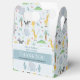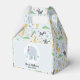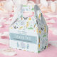 This cute and whimsical blue boys baby shower favour box features a safari elephant, with jungle pattern that includes a lion, giraffe, zebra, crocodile and plants, and can be personalised with the parent's names and a short thank you message. The perfect jungle safari themed personalised favour box for your co-ed couples boys baby shower.