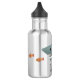 This cute and modern kids water bottle design features a blue shark cartoon with orange fish. The bottle can be personalised with your boys name. The perfect ocean themed addition to your kids school supplies!