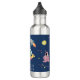 This cute and modern kids school stainless steel water bottle design features a space alien cartoon, with a rocket ship, aliens, stars and moon, and can be personalised with your boys name. The perfect blue space and monster-themed addition to your boys school supplies, perfect for preschool or kindergarten!