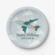 Boys Cute Blue Travel Aeroplane Kids Birthday Paper Plate