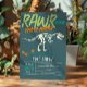 This cute and modern boys 6th birthday invitation design features a t-Rex dinosaur skeleton, with a pattern on the back with Jurassic plants, prehistoric dinosaur fossils, and other archaeology illustrations. The invite can be personalised with your child’s name and other details necessary for your party, and can also be edited for other ages. The perfect dinosaur dig themed invites for your child’s dino party!