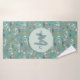 This cute personalised kids towel set design features a blue and green dinosaur fossil pattern, with Jurassic plants, Dino skeleton bones, and other archaeology illustrations. There is also space for you to add your boys name on every towel, and monogram on the bath towel, in whimsical typography. The perfect dinosaur themed gift for any history or dinosaur enthusiast, great for both toddlers and older children.